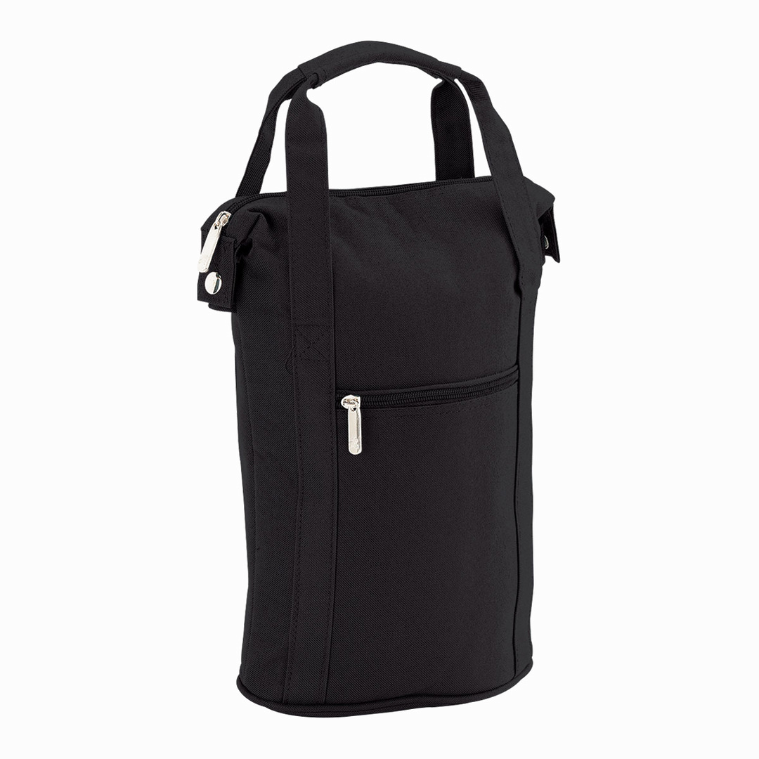 - Insulated cooler holds 2 bottles